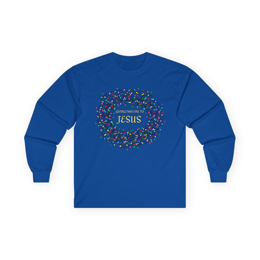 Giving This One To Jesus – Unisex Long Sleeve Christian T-Shirt, Faith-Inspired Christmas Lights Shirt