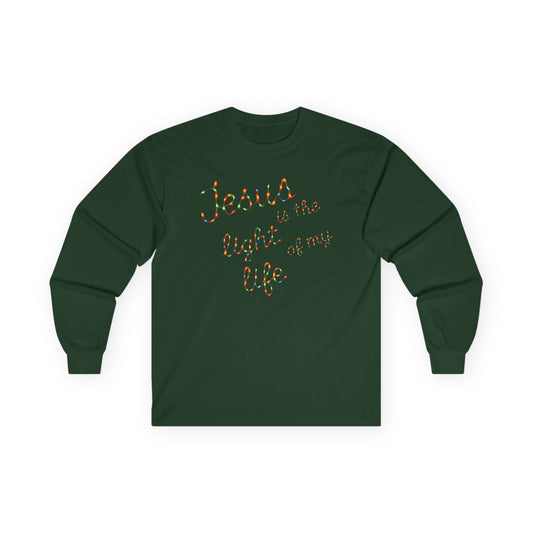 Jesus Is the Light of My Life – Unisex Long Sleeve Christian Christmas T-Shirt, Holiday Faith Apparel