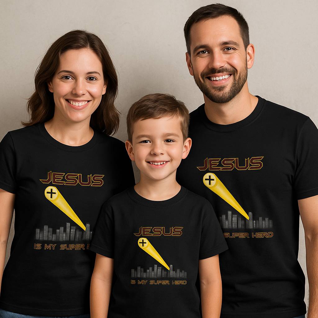 Kids Super Savior Tee — “Jesus Is My Superhero” Christian Shirt (Mini + Me)