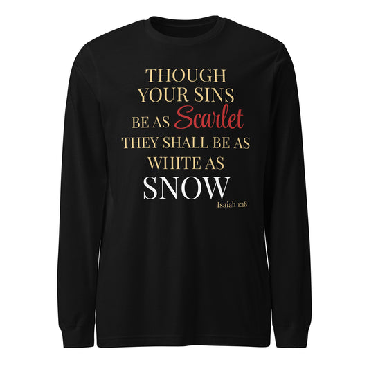 Isaiah 1:18 – Though Your Sins Be as Scarlet – Christian Jersey Long Sleeve Tee